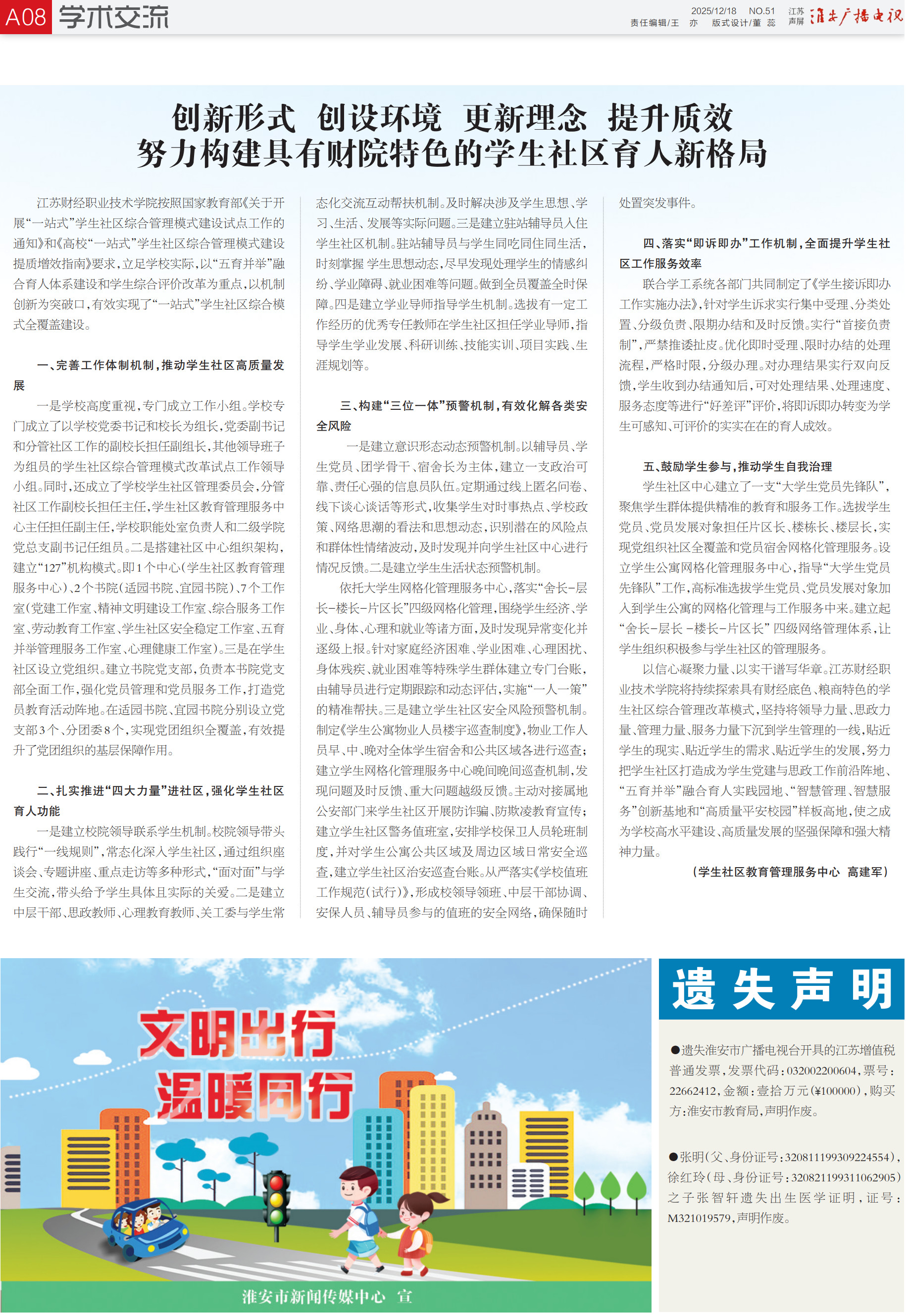 以信心凝聚力量、以实干谱写华章。江苏财经职业技术学院将持续探索具有财经底色、粮商特色的学生社区综合管理改革模式,坚持将领导力量、思政力量、管理力量、服务力量下沉到学生管理的一线,贴近学生的现实、贴近学生的需求、贴近学生的发展,努力把学生社区打造成为学生党建与思政工作前沿阵地、“五育并举”融合育人实践园地、“智慧管理、智慧服务”创新基地和“高质量平安校园”样板高地,使之成为学校高水平建设、高质量发展的坚强保障和强大精神力量。