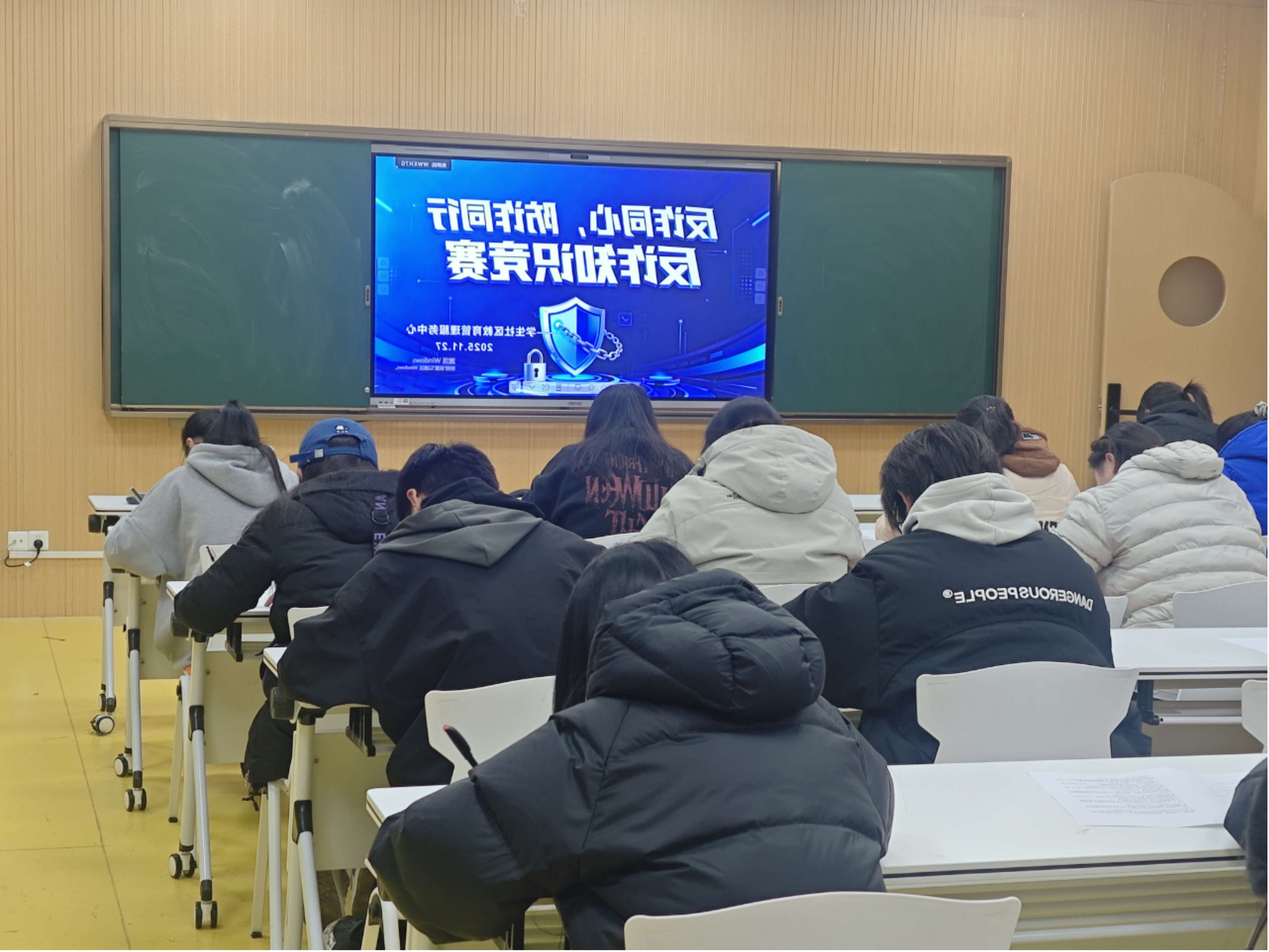 为切实筑牢校园反诈防火墙,全面提升在校学生的识诈防诈能力,11月27日晚,学生社区中心功能型团支部“平安盾”普法反诈团小组在大学生五育融合发展中心思政工作室组织开展“反诈同心,防诈同行”反诈知识竞赛。本次竞赛吸引全体在校学生积极参与,现场氛围热烈而有序。